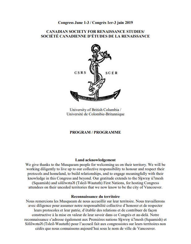 Following this message is the most current version of our programme. If you see any mistakes, then please let me know. This is a link to UBC’s online map pages (https://www.ubc.ca/about/maps.html), which will help you locate our main rooms (Buchanan D for concurrent sessions on 1 and 2 June, the Allard Law School for concurrent sessions on 3 June, and Buchanan A for our plenaries). All of these buildings are very close to one another, which is great, especially if it rains (which it may do).