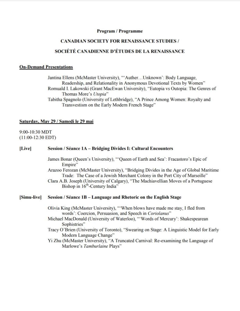 Dear 2020 CSRS / SCÉR Conference Program Participant: