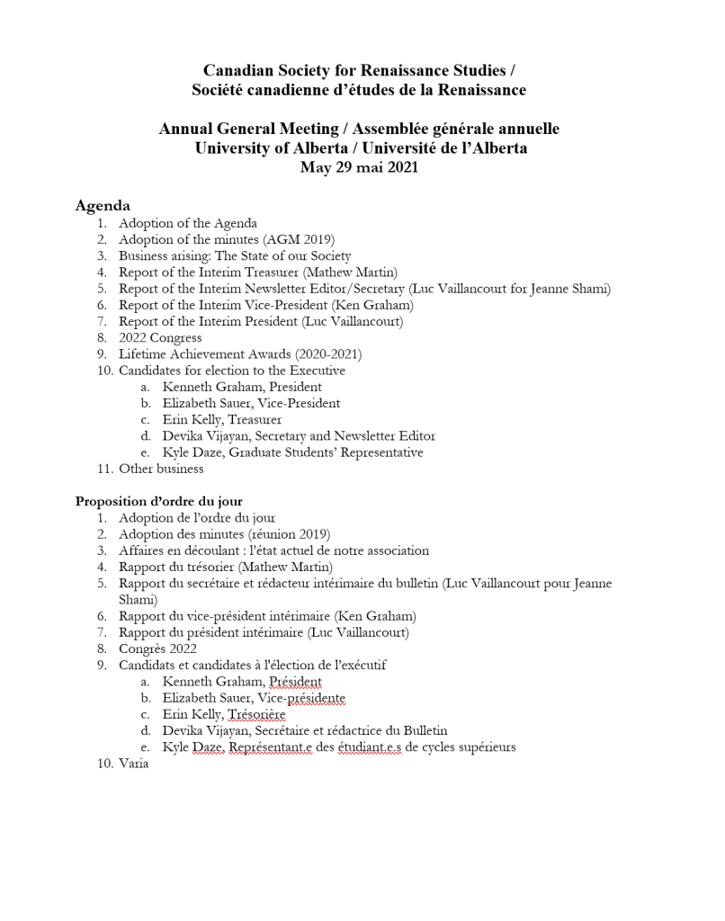 Minutes from the AGM / procès-verbal de l’Assemblée générale annuelle